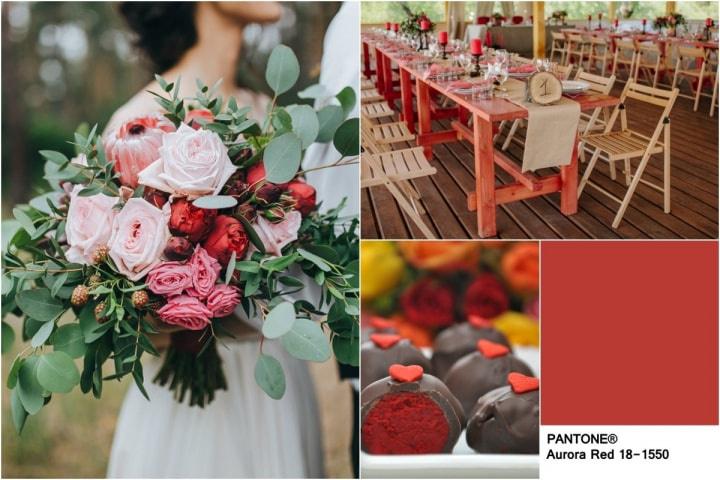 Aurora Red aparece como cor tendência desta temporada outono-inverno, trazendo a força de uma tonalidade viva e vibrante. A cálida essência do outono, traz consigo um tom cheio de sensualidade e uma beleza impecável. Dinâmico, emocionante e inconfundível, o Aurora Red, pela sua imponente força e vitalidade, será uma grande aposta para casamentos rústicos ou boho chic, juntamente com cores como o castanho, cobre ou o verde.