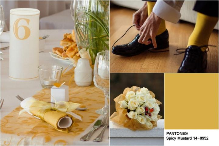 Das cores mais vitais que se apresentam como tendência da próxima temporada outono-inverno, o Spicy Mustard, uma mistura entre a acidez de um amarelo limão e a calidez do cobre, encaixará na perfeição nos casamentos celebrados nos meses mais frios do ano. Combinado com cores naturais, como o castanho ou o verde, e neutros como o branco, ressaltará em qualquer canto da decoração nupcial, sem a necessidade de se mostrar como uma cor estridente. A elegância do seu brilho, fará deste Spicy Mustard, um ideal indiscutível em casamentos de estilo clássico, para noivos mais românticos ou vintage, ainda que também será uma aposta acertada em cenários naturais, onde os casamentos de estilo rústico adquirem um maior protagonismo.