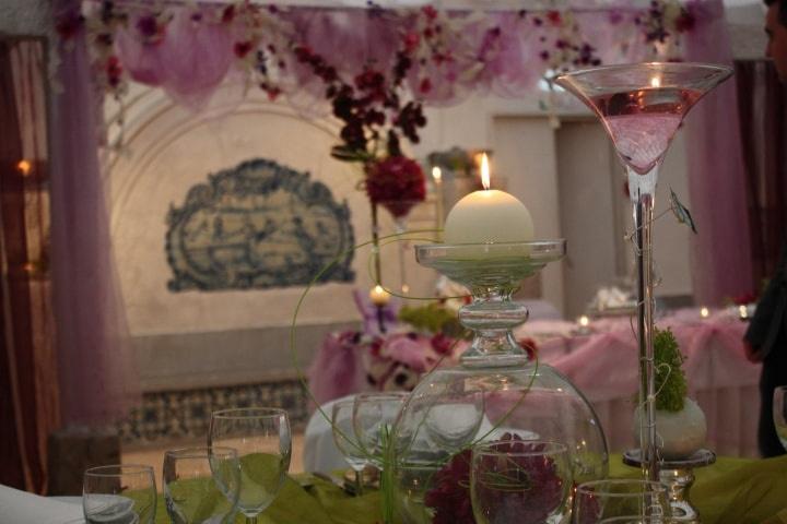 - Um bouquet: vocês gostam de flores e vão ter um casamento no campo ou de estilo boémio? Então podem decorar as mesas com garndes bouquets de flores dentro de copos de Martini. Também podem associar às flores, outros elementos, como as plumas ou as pérolas.