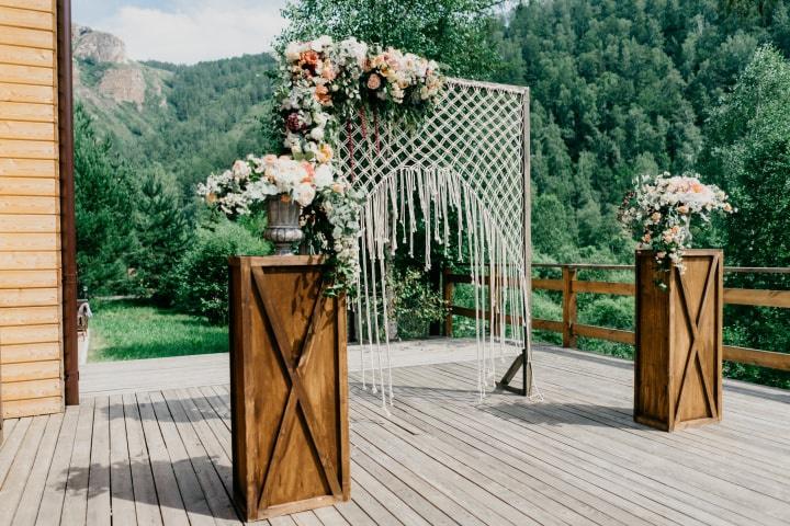 Há estilos de casamento que convidam a inovar ao máximo, desde os convites de casamento originais a um arco de cerimónia totalmente fora do comum. É o caso dos casamentos celebrados ao ar livre, numa quinta ou floresta, que podem adotar um estilo mais boho, woodsty ou hippie chic. Nesta linha, usar elementos naturais como a madeira, tanto para a estrutura do arco como para a sua decoração decoração, é sempre uma aposta ganha. Para uma cerimónia na praia, onde o próprio ambiente envolvente serve de inspiração para a decoração, nada como usar uma estrutura de madeira decorada com conchas, estrelas do mar e corais para estar em sintonia com a natureza.