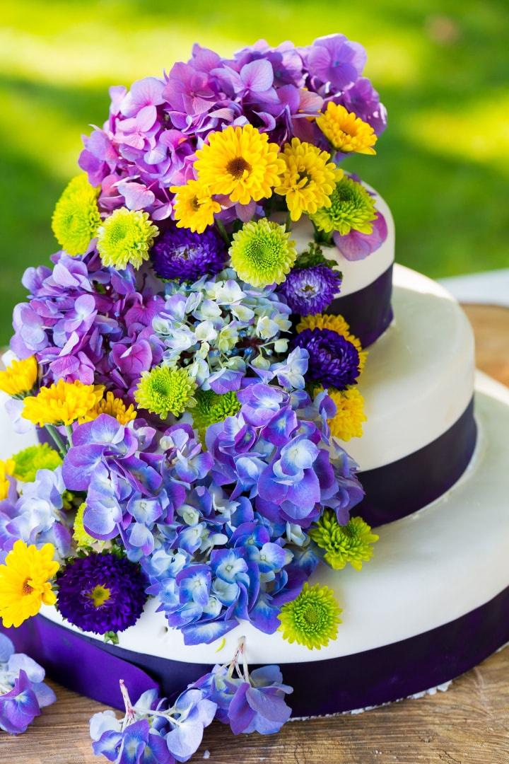 Já pensaste em como será o vosso bolo de casamento? Aqui também podem aplicar o ultra-violet para um resultado tão romântico quanto magnético. Se quiserem ter um bolo de casamento simples e tradicional, todo em branco, utilizem flores roxas para decorá-lo (violetas, orquídeas, gerânios...). Ao misturá-las com outras flores ou com fruta (mirtilos, amoras e figo), podem conseguir uma verdadeira obra de arte! Caso prefiram algo mais minimalista, optem por um topo de bolo de casamento que jogue com esta tonalidade.