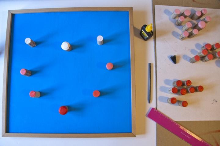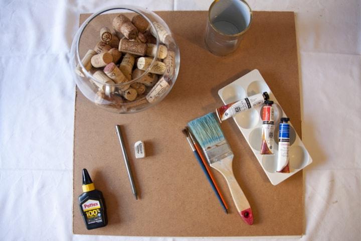 De seguida, deixa secar as rolhas com a cabeça pintada para cima e pinta o suporte.