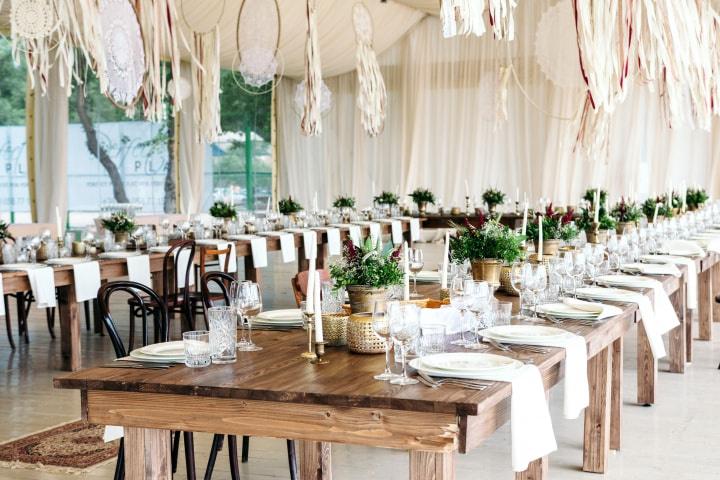 Basta uma visita rápida ao Pinterest para te apaixonares por todas as ideias e DIY que utilizam esta técnica. Mas nós vamos facilitar-vos a tarefa. Se optaram por uma cerimónia civil e vão dispor cadeiras para os convidados se acomodarem, em vez de utilizarem as tradicionais capas lisas ou com motivos para as proteger, que tal ornamentá-las com macramé para entrar bem no estilo boho-chic? O macramé adora contrastar com materiais rústicos e naturais como madeira e corda, por isso já sabem que o plástico não é bem vindo. Disponham o acessório nas costas da cadeira ou no colo, para proporcionar conforto extra aos convidados na hora em que aplaudem os noivos quando trocam alianças de ouro branco.