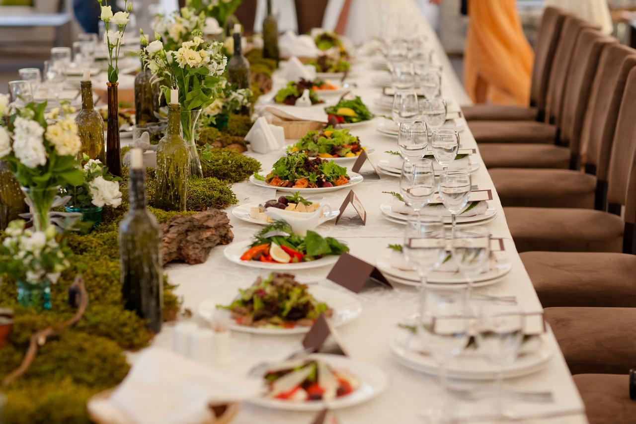 O estilo woodsy é um dos estilos tendência do momento, sobretudo no que toca aos casamentos rústicos. Esta decoração privilegia a madeira e os detalhes naturais, para conseguir ambientes frescos e verdadeiramente inspiradores - e que combinem na perfeição com um vestido de noiva simples e descontraído. Assim, para dar um toque único às mesas do vosso copo de água, apostem no musgo! No centro de mesa, se escolheram mesas redondas, ou como corredores, caos tenham mesas retangulares e compridas. Como plus, podem intercalar o musgo com velas, flores, jarras de cerâmica ou madeira.