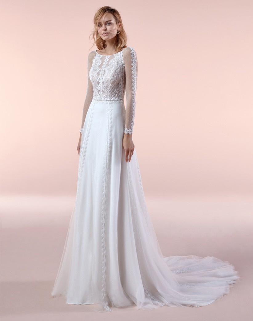Nesta coleção cápsula, a graciosidade reina. Todos os vestidos exibem uma aura fresca e natural, o que os torna perfeitos para enlaces ao ar livre. Para além disso, ostentam ainda um toque bastante romântico - que se pode apreciar sobretudo nos rendilhados com motivos florais, nas mangas compridas e nos detalhes em guipure - que apaixonará qualquer noiva que procure um visual feminino e com nuances gipsy.