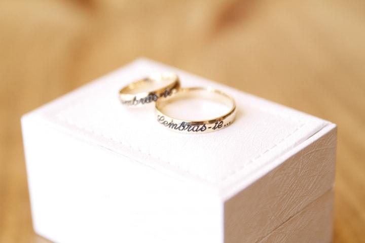 Já decidiram dar um toque mais pessoal à vossa aliança de casamento recorrendo à gravação no seu interior, mas, ainda não decidiram o que escrever? Hoje falamos das ideias mais criativas para personalizar as vossas alianças... inspirem-se!