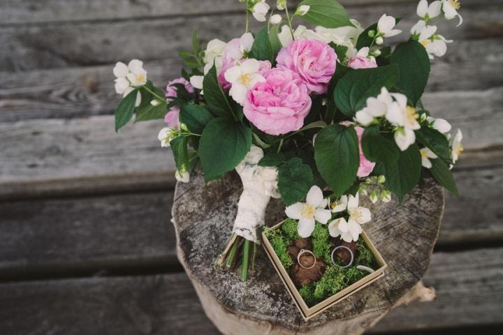 O objeto mais importante do vosso grande dia? As alianças de casamento, claro! Por isso, se querem conseguir um 2 em 1 muito especial, não deixem de fotografar os vossos anéis com o bouquet. Se o ramo for muito grande, ao ponto de "eclipsar" por completo as alianças, experimentem colocá-las dentro do porta-alianças ou numa superfície de cor. Assim vão conseguir o equilíbrio pretendido!