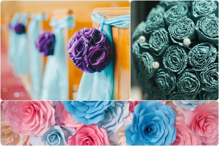 Existem muitas técnicas para realizar estas flores e os efeitos que se conseguem são geniais. Podem fazer bolas de flores, ramos como centros de mesa ou até, para as mais ousadas, ter o bouquet em papel. Têm a vantagem de não sofrerem com o calor. Além dos tradicionais, se usarem papéis reciclados de revistas ou até livros, obtêm um resultado mais boémio.