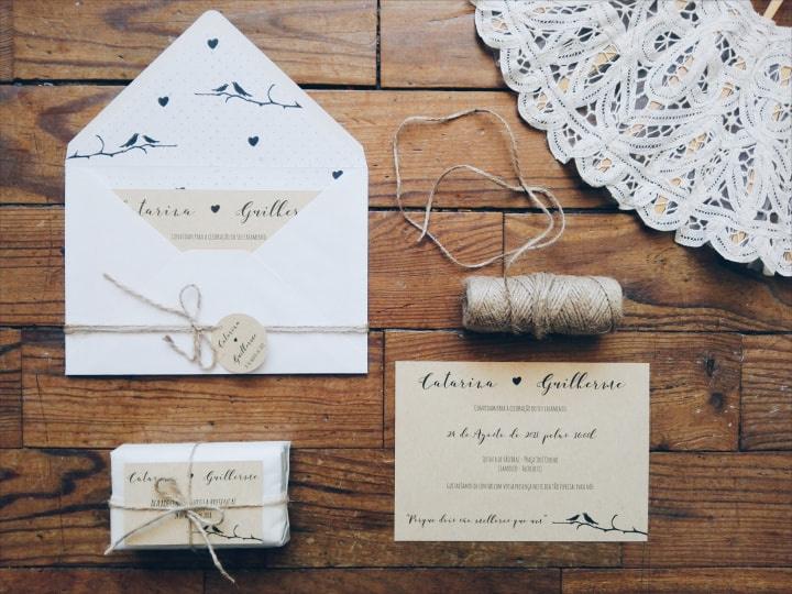Por fim, a última tendência não podia deixar de ser os convites de casamento simples e feitos em casa. O facto de quererem personalizar cada detalhe do casamento, faz com que, também na papelaria, os noivos apostem por inovar. Querem uma ideia? Inspirem-se na caligrafia antiga e manual sobre um papel de aspeto envelhecido. Desta forma, os convites tornam-se simples, ternos e totalmente personalizados. Esta ideia é ideal tanto para casamentos vintage, como para o novo estilo industrial que tantos adeptos tem vindo a ganhar nos últimos tempos.